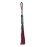 Softly seduce before you give a luscious lashing. Crimson velveteen tails cascade delicately onto your lovers tepid flesh, gradually bringing their senses to the surface. Lulled yet titialted, their breath bated and eyes obscured beneath a silken blindfold, you feel their nervous anticipation silently begging for more. A moment of silence ensues, followed by a satisfying swish as falls fly fiendishly onto flushed flesh. An irresistible moan of surprise escapes their lips and a full body twitch lets you know they're ready for another lash. The sturdy handle and wrist loop give you a dependable grip for intense encounters.