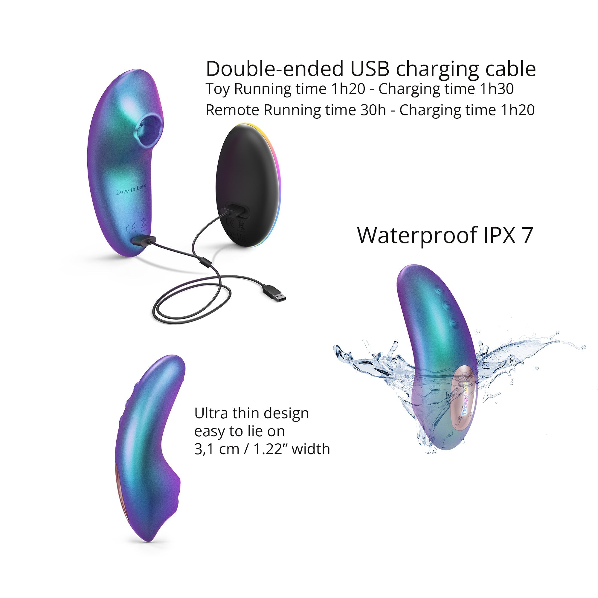 - Material : silicone & ABS (toy and remote) v Remote control range : 10 m