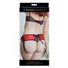 Red lipstick, red lace. Light up the night and your lover’s face! The glow of scarlet lights up the room and the mood is instantly set. No one can argue with the seductive power of red when you don this sexy Lace Corsette Strap-On. The bedroom is your stage and you’ll be running the show with several acts of naughty fun. Insert your favorite dildo and soak up the spotlight as the adjustable straps of the harness hug your assets. Changing up your routine is easy with the three included interchangeable 0-rings, compatible with flare-based dongs. A secret pocket on the inside of the front panel will accommodate a vibrating bullet for your satisfaction as you play ring leader for the night.