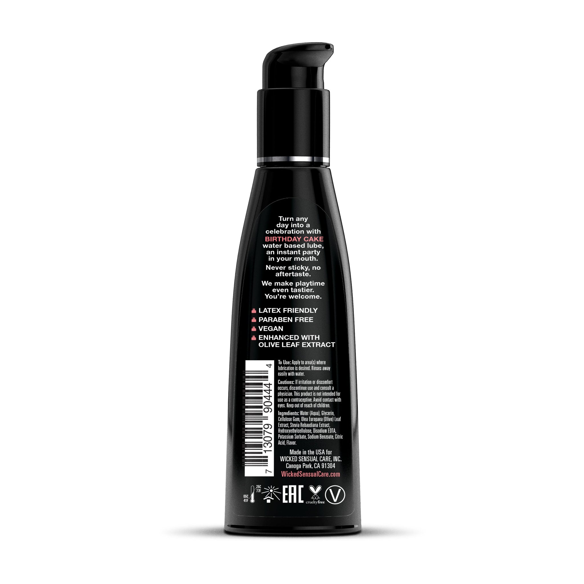 Wicked® AQUA Birthday Cake adds subtle natural flavors to enhance oral pleasures. Light & silky, this water based formula is the perfect sensual combination of an elegant lubricant and a flavor sensation. Never sticky and without an aftertaste, AQUA Birthday Cake satisfies your sweet tooth and your intimate desires all in one amazing pleasure product. 4oz.