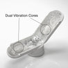 Two vibrating motors are housed inside the elastomer for direct, rumbling stimulation.