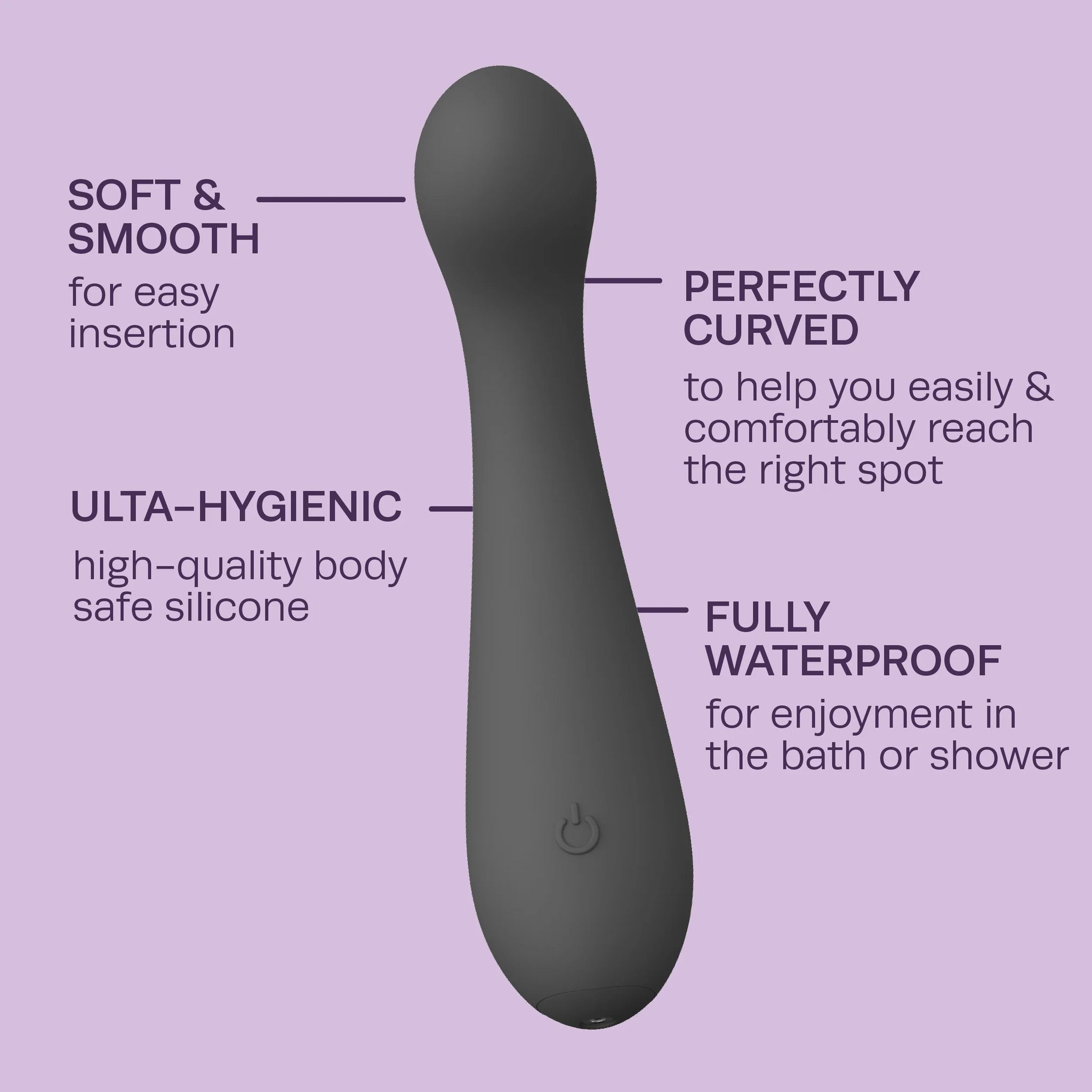 - Curved form to hit just right place for internal or external pleasure