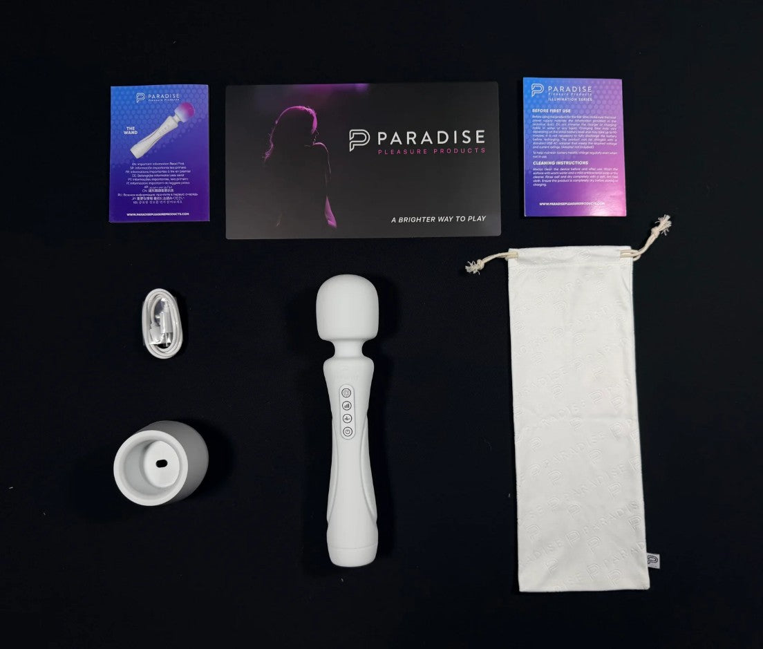 Crafted from ultra-soft silicone with integrated RGB illumination, the wand includes a charging cable and stand, transforming it into an ambient mood light when not in use.