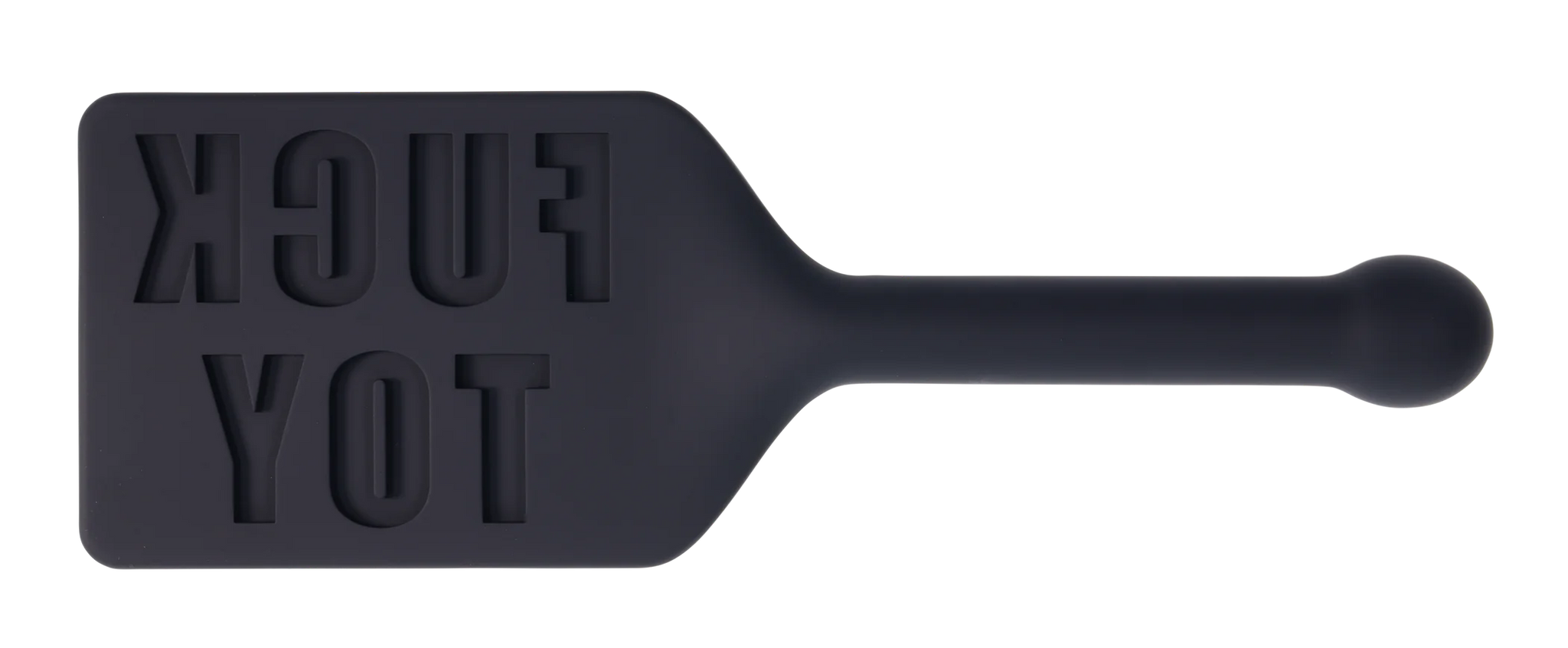 Leave your mark with the Edge® Silicone Paddle—a 100% silicone paddle designed to make an unforgettable statement. Imprinted with the word "FUCK TOY," this paddle stamps your play thing with a unmistakable mark after each strike, elevating your power dynamic to a whole new level. The flexible paddle head moves fluidly with every swing, delivering the perfect mix of sensation, while the metal-reinforced handle adds a satisfying weight for precision and control. For an added twist, the sturdy handle is also insertable, giving you even more options for creative play. Whether you’re doling out discipline or teasing your partner, the Edge® Silicone Paddle guarantees that your session will leave a lasting impression.