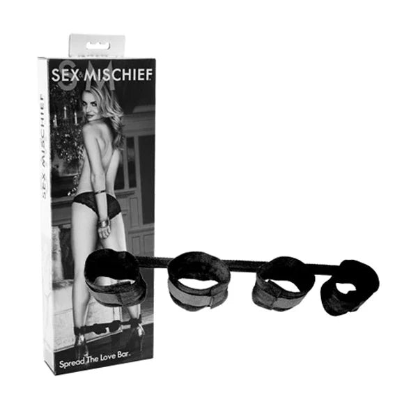 Four comfortable and adjustable cuffs attached to a rigid nylon-covered 15 inch (38 cm) spreader bar.