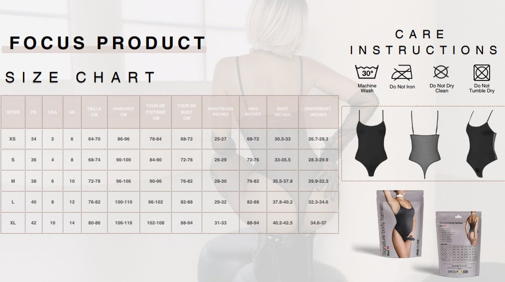 Unprecedented and unique, Signature reinvents the harness as a body. Timeless yet daring, it blends elegance and sensuality with a bold modern twist. At the front, soft microfiber flows elegantly along the silhouette. At the back, sheer tulle unveils a play of seduction, illuminated by a gold embossed logo. The string finish adds a bold, minimalist touch, shaping a confident and refined allure. A hybrid piece at the crossroads of lingerie and fashion, Signature asserts itself as an essential for the intimate wardrobe. Its discreet, stretchable ring, subtly concealed at the front, unlocks an unprecedented experience where pleasure becomes an integral part of style. Available in black, sizes XS to XL, Signature enhances every silhouette.