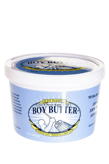You'll Never Know it isn't Boy Butter or Boy Butter H20 is our water-based cream formula with Vitamin E and Shea Butter whipped into an organic creamy lubricant that is safe to use equally for both men or women. The formula is creamy and goes on clear, is toy safe, latex safe, vaginally safe and edible.. Boy Butter H20 is Long Lasting, gentle, washable, and eventually absorbs into the skin it can even be used as moisturizer or lotion.