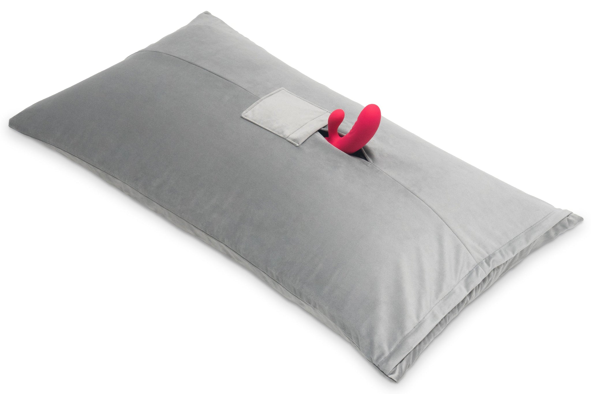 - Pillow-shaped sex toy mount with two secure toy pockets
